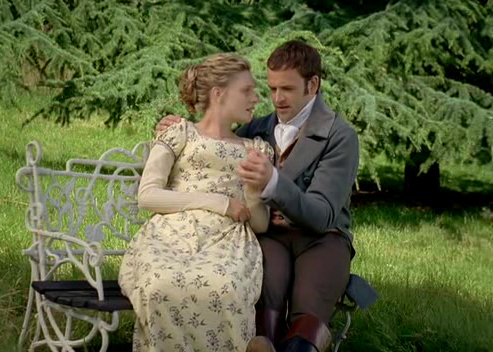 Quando assisti os primeiros trailers achei muito esquisito certos trechos, como por exemplo, o rompante de Emma dizendo que amava Mr. Knightley. Neste caso continuo achando esquisito os modos, mas não o texto em si. Outra impressão inicial foram os atores principais: acreditava que Romola pareceria jovem o suficiente e Jonny jovem demais. Pois bem, aconteceu o contrário e gostei bem mais da atuação dele.